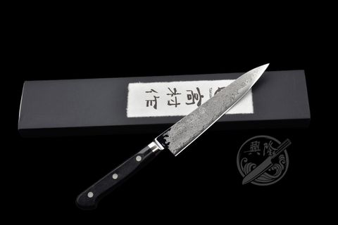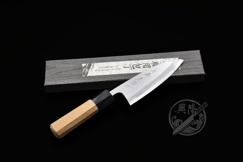 〔興隆刀剪行〕*高橋楠一刀齋虎徹 不銹銀三鋼 骨透150mm 朴木八角柄/-